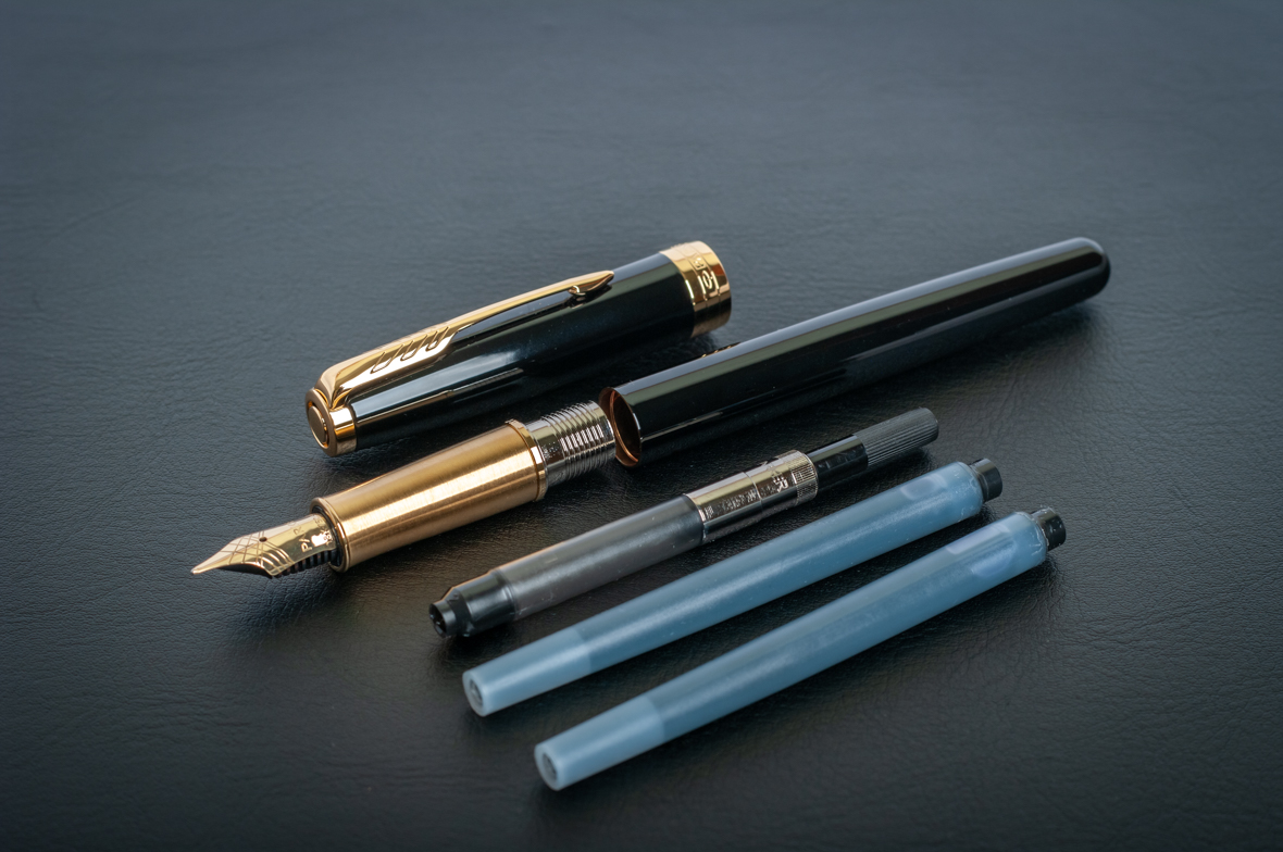 Зажим колпачка: сталь, покрытая золотом.
