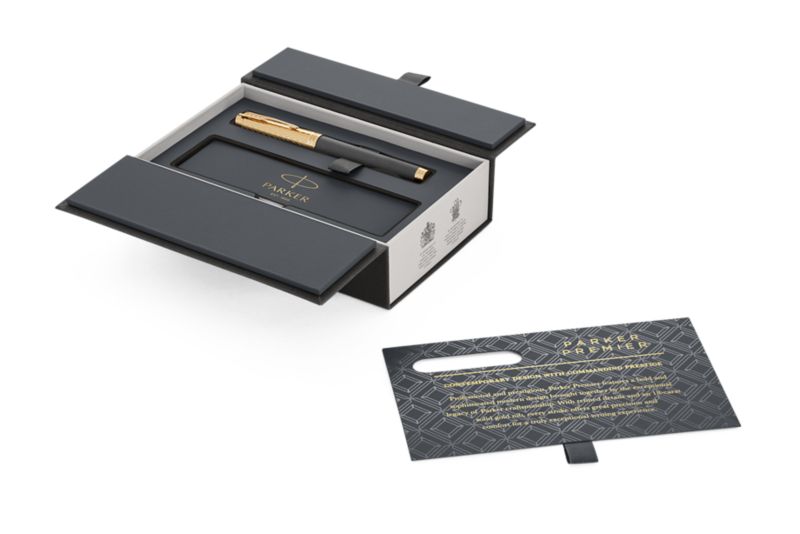 Ручка роллер Parker Premier Storm Grey GT от официального дилера Parker в Махачкале. Вы можете дополнительно заказать гравировку, которая подчеркнет Вашу оригинальность и придаст памятность статусному подарку. Все ручки Паркер поставляются в фирменном футляре.