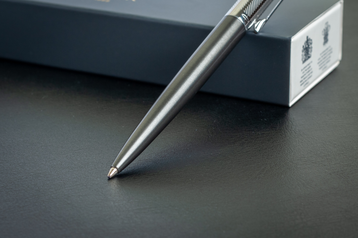 Шариковая ручка Parker Jotter Premium Tower Grey Diagonal CT от официального дилера Parker в Махачкале. Вы можете дополнительно заказать гравировку, которая подчеркнет Вашу оригинальность и придаст памятность статусному подарку. Все ручки Паркер поставляются в фирменном футляре.